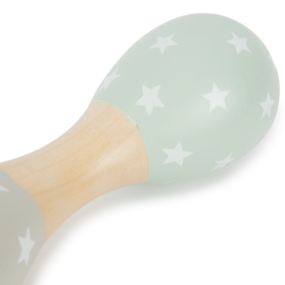 **Mit tartalmaz a csomag:** Két fa súlyzó alakú csörgő színes gyöngyökkel.