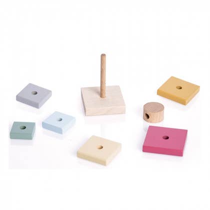 A klasszikus piramis torony az egyik legidőtállóbb fejlesztő játék, ami generációk óta ugyanazt az örömet adja: látni, ahogy a gyerek rájön, hogyan kell a gyűrűket méret szerint sorba állítani.